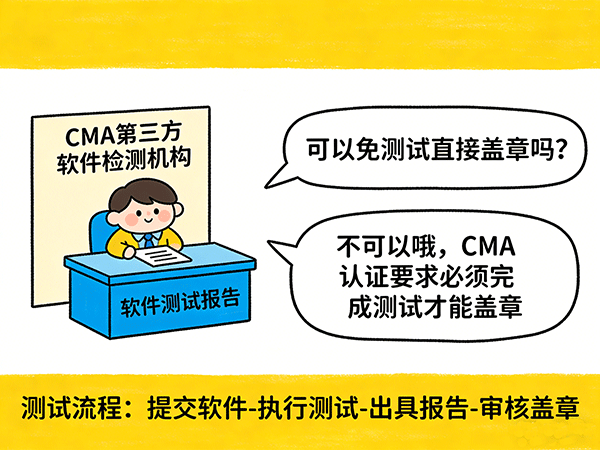 绝对不能。CMA第三方检测机构不可以免测试直接给软件测试报告盖章。 任何声称不用测就能出报告盖章的机构,都在进行违法行为。