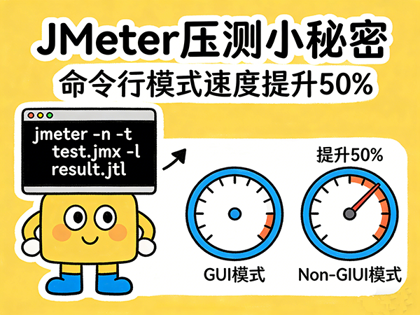 JMeter 命令行方式速度提升 50%的秘密,本质是将有限的系统资源从界面渲染和冗余监听器中解放出来,集中投入到真正的压测任务上。配合内存优化、数据驱动、分布式扩展等技巧,你甚至可以实现数倍的性能提升。对于任何性能测试,请必须记住这条黄金法则:在 GUI 上设计,在命令行上运行。