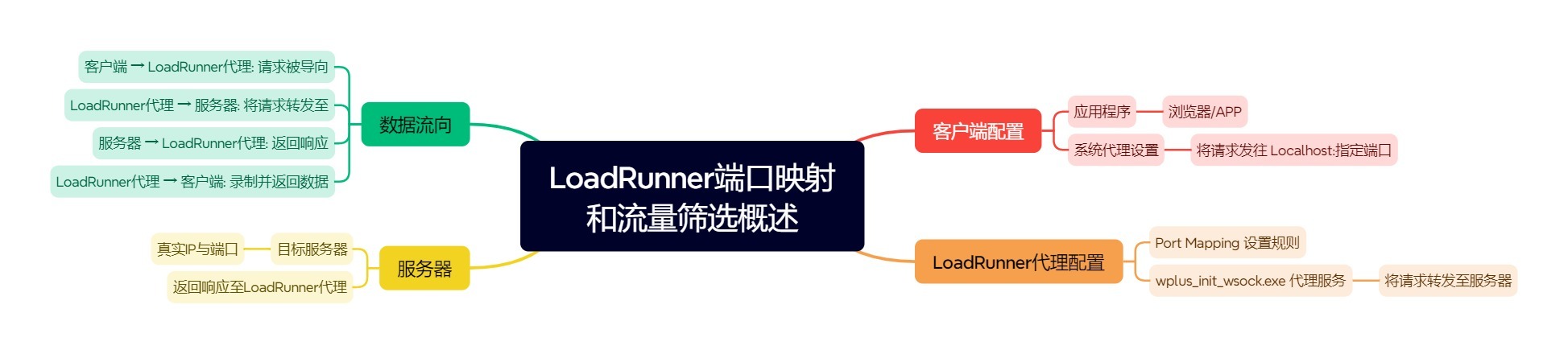 主要原理:端口映射的本质是建立一个代理转发规则。它将原本由应用程序直接发往外网服务器的请求,先引导至LoadRunner在本地启动的代理服务。代理服务随后将请求转发给真正的目标服务器,并在此过程中监控和录制所有流量。