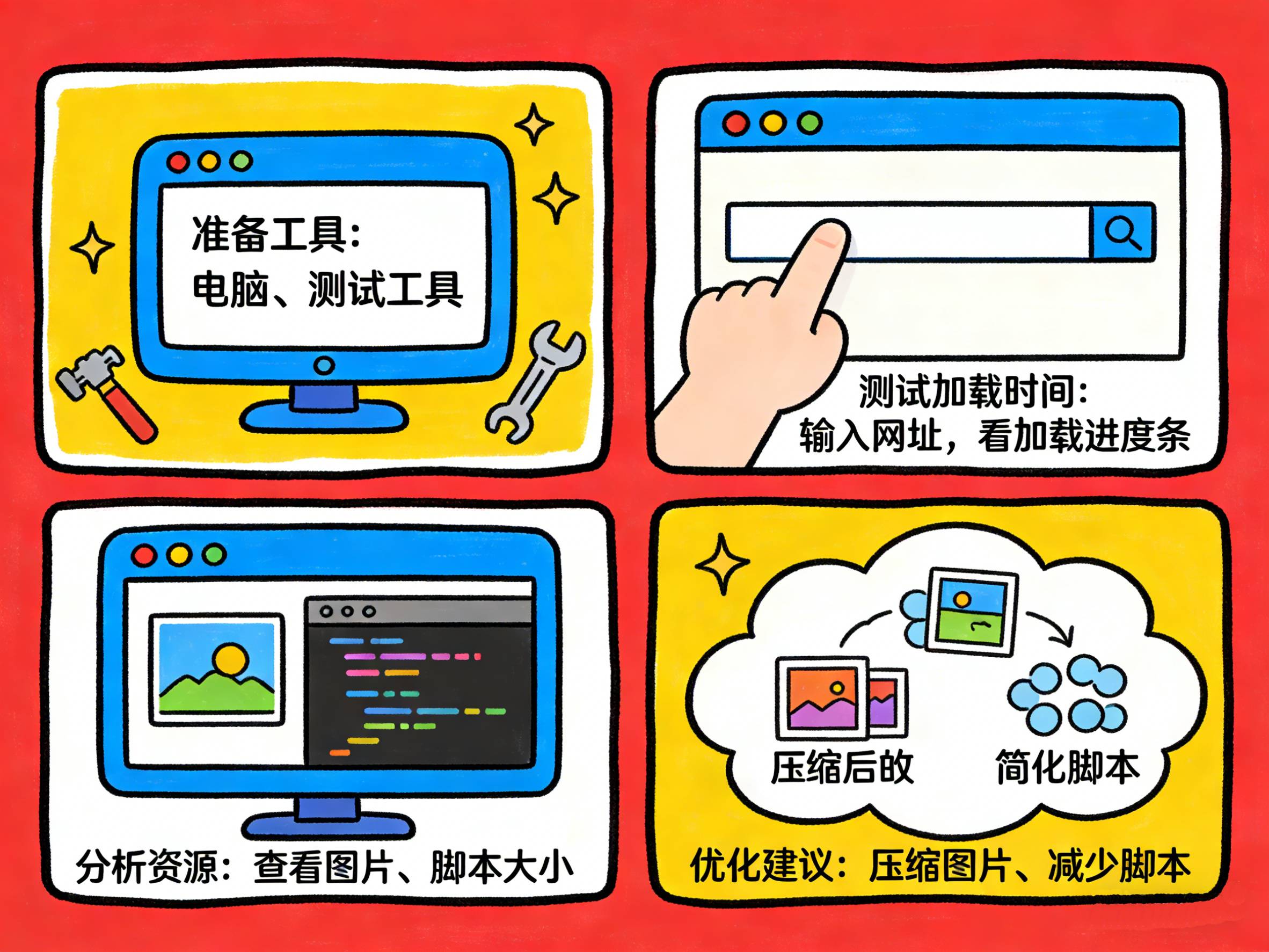 如果是前端慢:图片太大未压缩?JS/CSS阻塞渲染?启用浏览器缓存或CDN加速一般能改善。