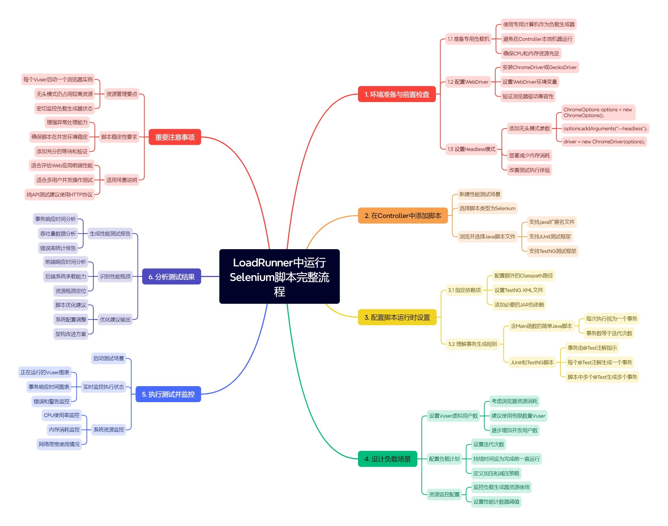 虽然LoadRunner官方提供了相应的集成功能,但要顺利且高效地完成这项工作,需要注意一些重要的配置和技巧。主要流程和重要配置点,你可以参考下面的流程图来建立一个整体的认识: