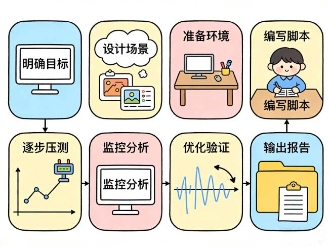 这些目的一般来自业务需求或服务等级协议(SLA),比如“登录接口在100并发下,95%的请求响应时间不超过200ms,错误率低于0.1%”。