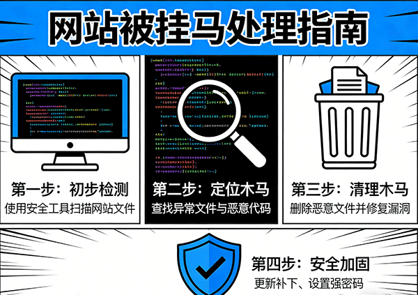 网站被挂马,是指黑客在网站中植入了恶意代码(比如赌博广告、病毒下载链接、跳转垃圾网站等)。如果你发现网站被微信/浏览器提示“危险网站”,或者打开后自动跳转到别的页面,大概率是被挂马了。